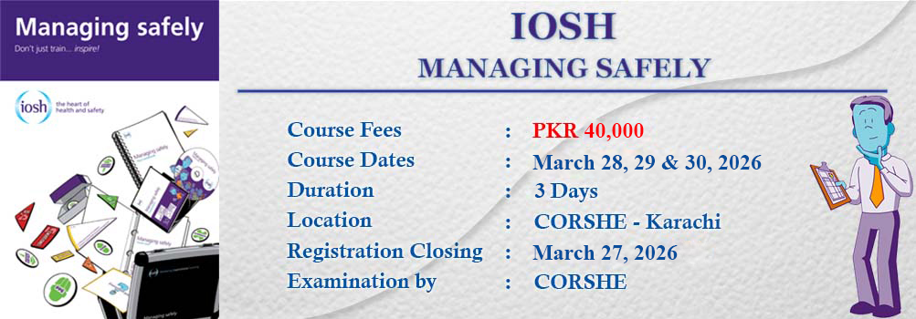 CORSHE is IOSH (UK) Accredited Occupational Health, Safety & Environmental Training Provider in Pakistan.